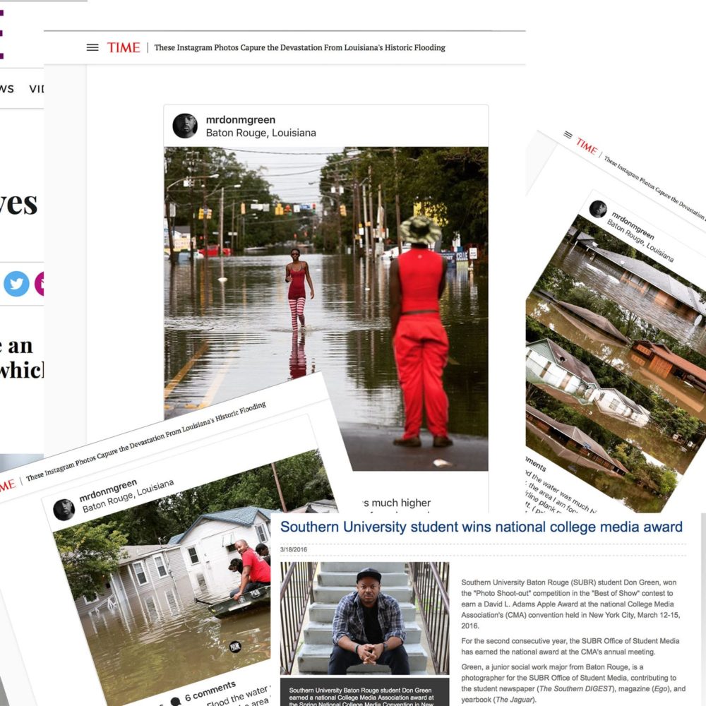 (image on right) Baton Rouge Flooding Captured” by Mr. Don M. Green. Published in Bloomberg Business Week / August 2017